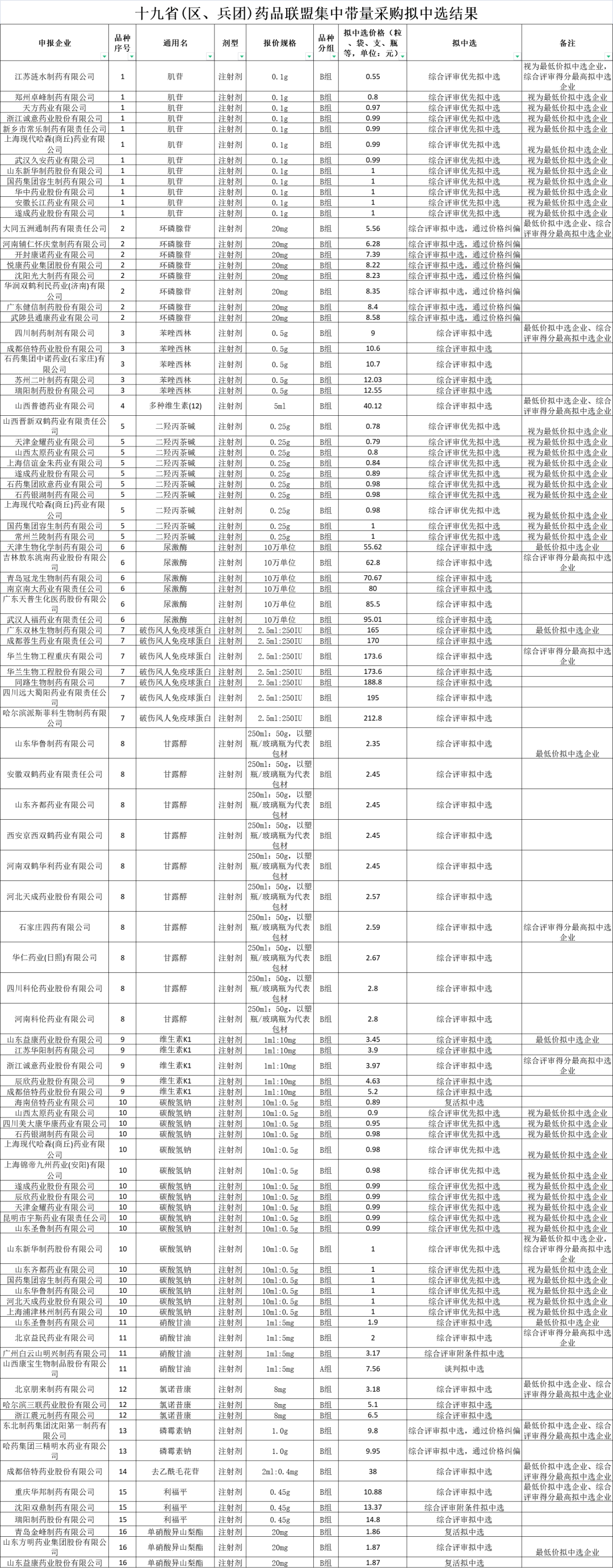 附4:十九省(区、兵团)药品联盟集中带量采购拟中选结果