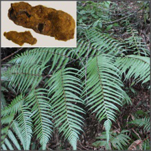 狗脊,异名金毛狮子、金毛狗脊、金毛猴、金狗毛、百枝、狗青、强膂、扶盖、扶筋、苟脊、金狗脊、毛狗儿、黄狗头、金扶筋、金猫咪、老猴毛。为蚌壳蕨科植物金毛狗脊的干燥根茎。味苦、甘,性温。具有祛风湿,补肝肾,强腰膝的功效。临床用于风湿痹痛,腰膝酸软,下肢无力。主产于云南、贵州、四川、广东、广西、福建等地。金毛狗脊被列为国家二级珍稀濒危保护品种。