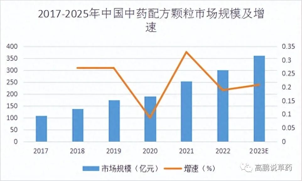 (图5 2017-2025年中国中药配方颗粒市场规模及增速)
