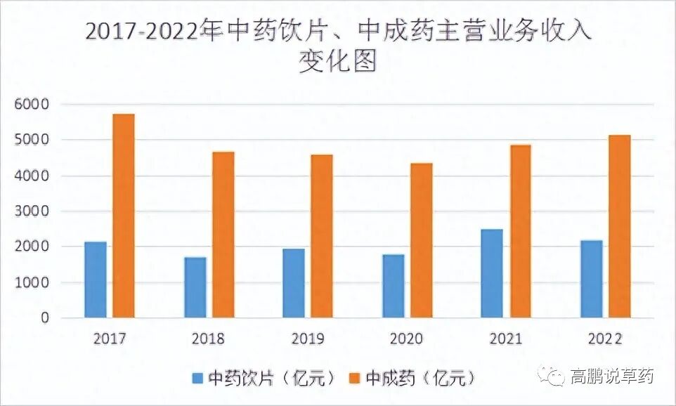 (图4 2017-2022年中药饮片、中成药主营业务收入变化图)