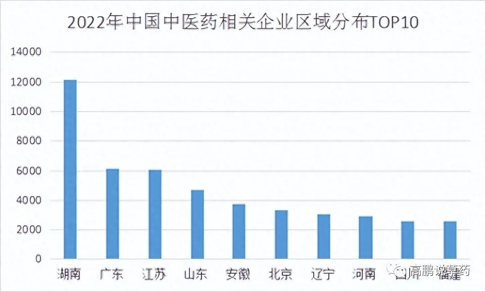 (图10 2022年中国中医药相关企业区域分布TOP10)