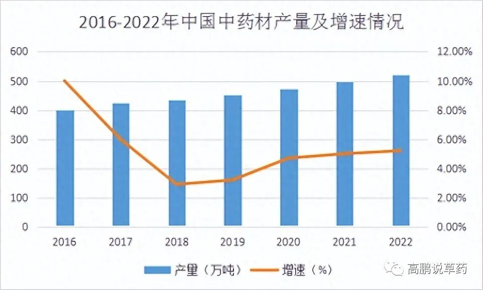 (图3 2016-2022年中国中药材产量及增速情况)