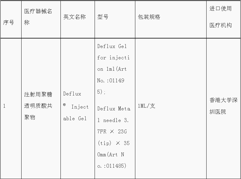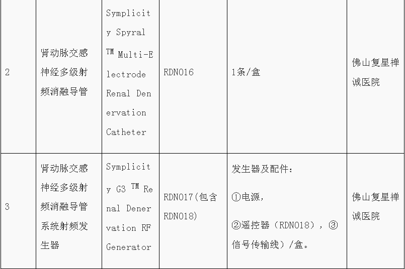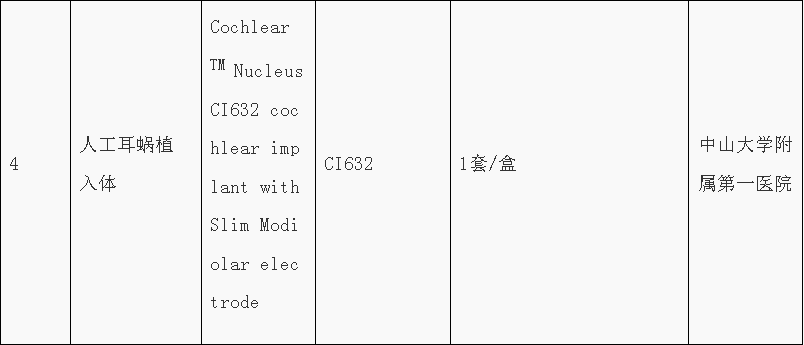 4个医疗器械:注射用聚糖透明质酸共聚物、肾动脉交感神经多级射频消融导管、肾动脉交感神经多级射频消融导管系统射频发生器、人工耳蜗植入体。
