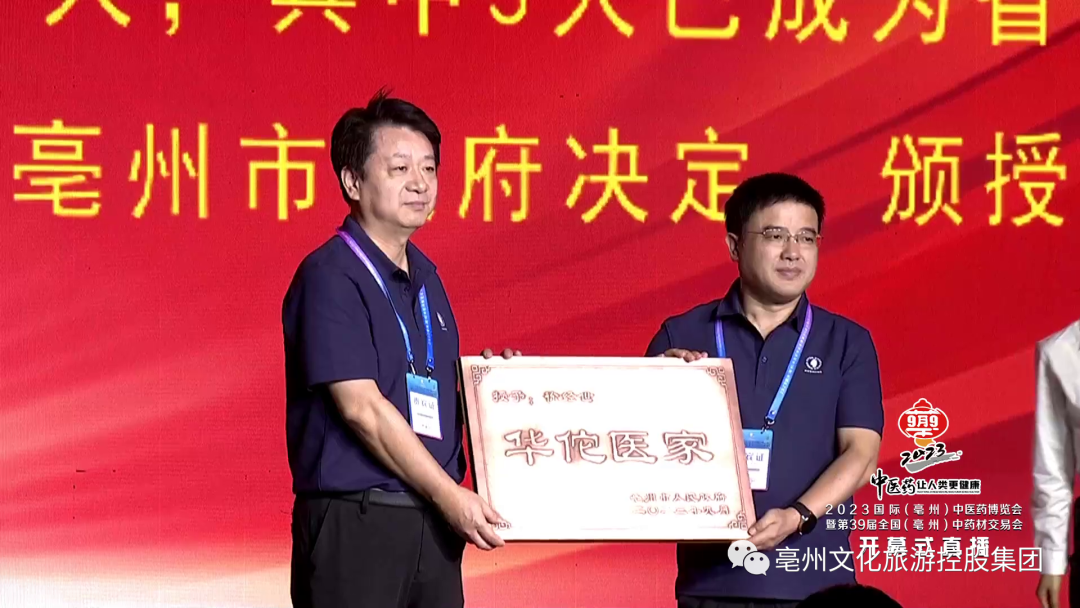 (亳州市委常委、常务副市长左龙为徐经世先生颁授“华佗医家”匾牌)