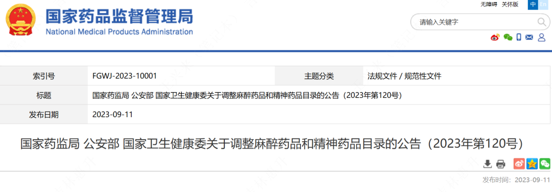 麻醉、精神药品目录调整→10月1日起施行