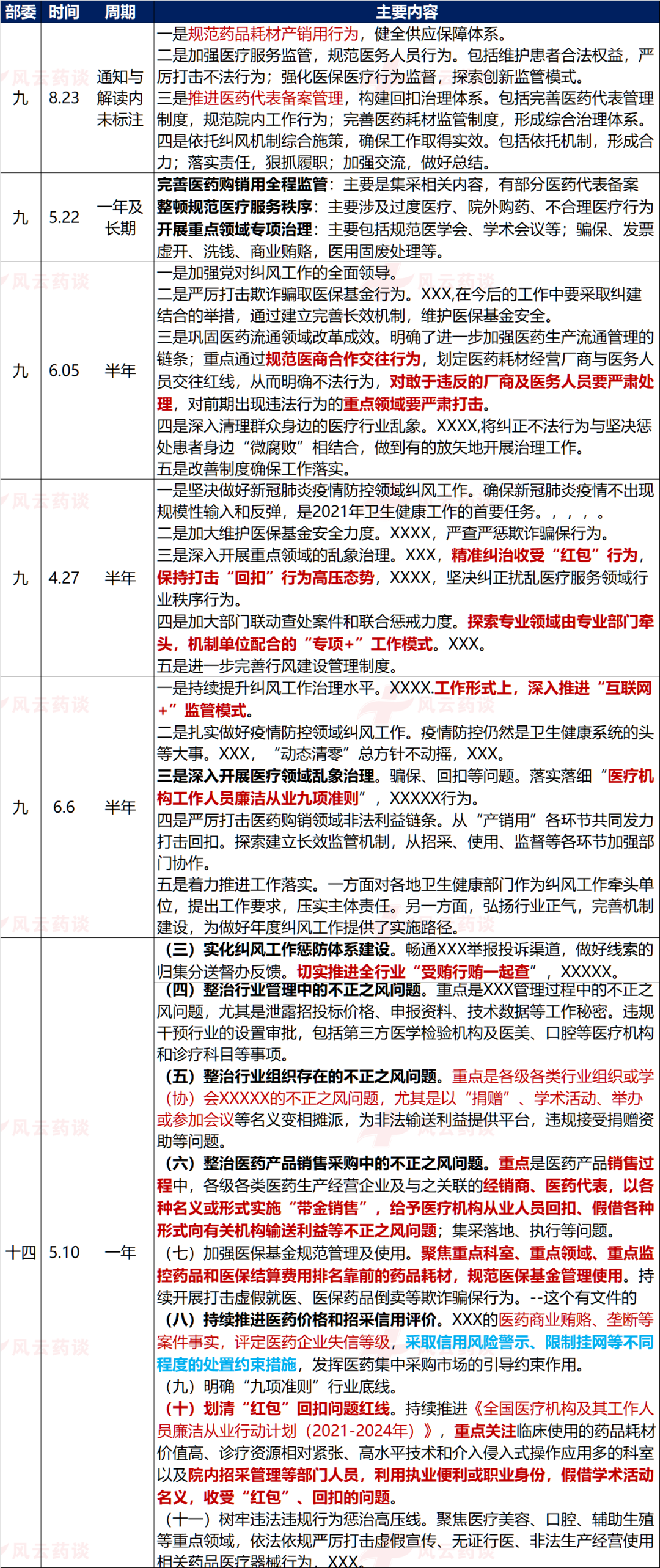 本次医疗反腐的时间轴比较清晰,政策线/文件线并不完全与时间轴一致,落地上在各个重点环节也有所不同;就本次医疗反腐的相关信息简单梳理一下: