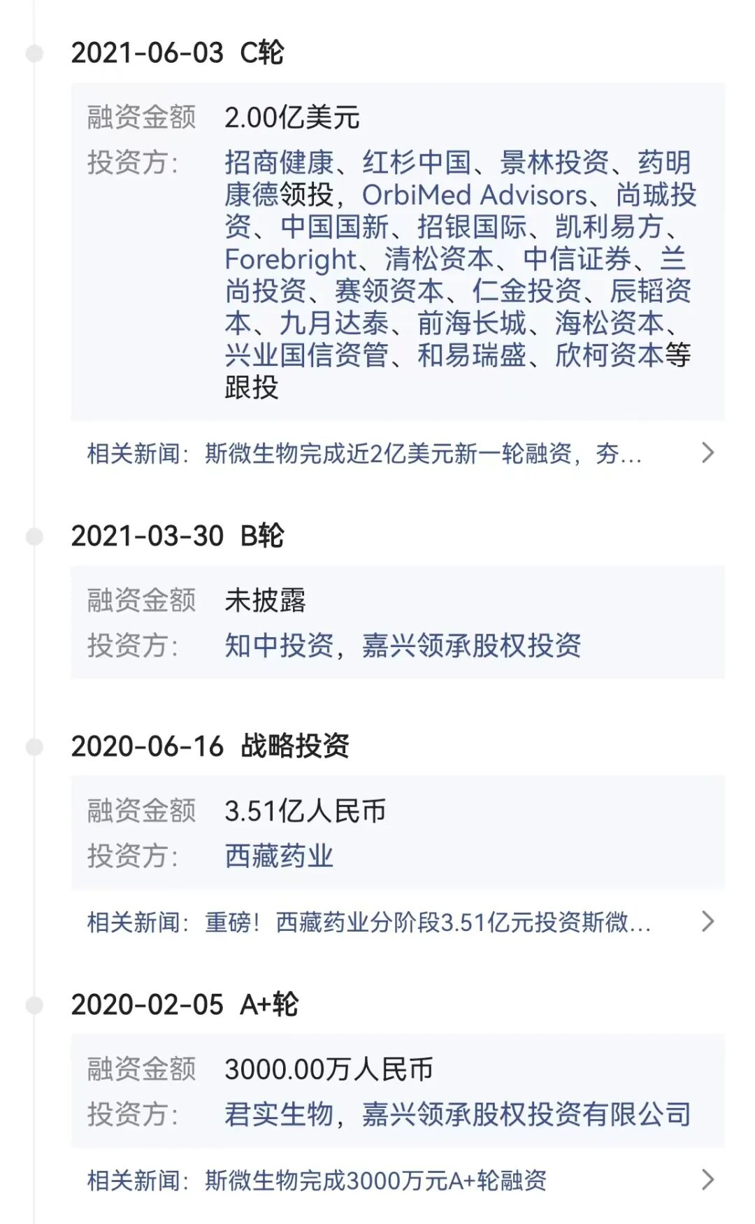 2023年5月,斯微生物对外宣布完成数亿元的Pre-D轮融资,但是没有公布具体的投资机构名称。