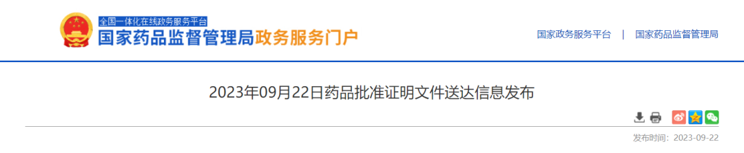9月22日,国家药监局发布最新药品批准证明文件。