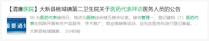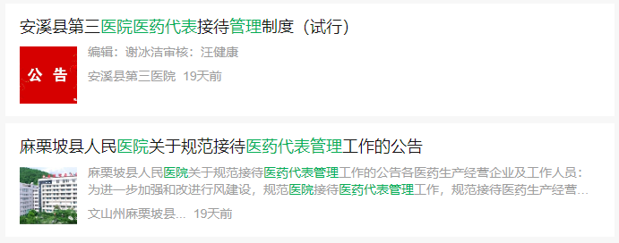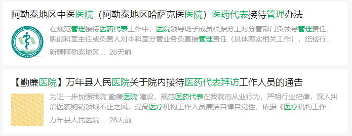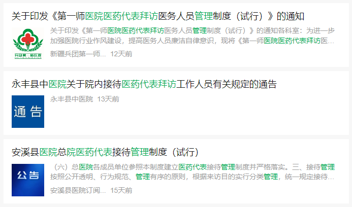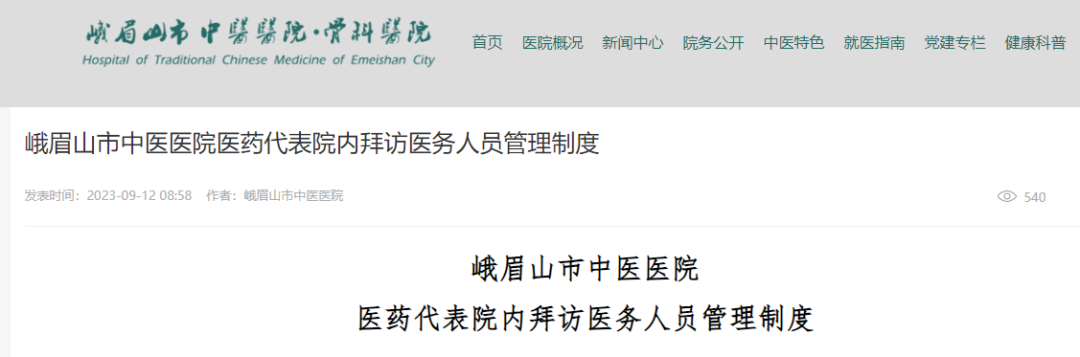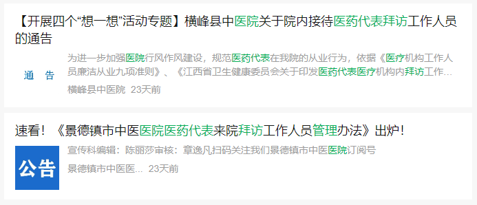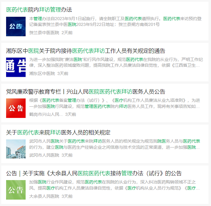 又有多家医院发布医药代表进院规定,院内拜访限制升级!近一个月内,各地医院密集发布医药代表备案、院内拜访的要求。上至大三甲,下至县医院、乡镇卫生院,院内备案要求、违规拜访惩戒机制迎来全面普及。9月12日,峨眉山市中医医院针对药品、医用耗材生产经销单位从事药品、医用耗材宣传、推广的人员(统称“医药代表”),发布《医药代表院内拜访医务人员管理制度》。本制度自发文之日起执行。其中明确,医药代表院内拜访须严格执行“三定三有”,即“定时定点定人”“有预约有流程有记录”。一旦发现医药代表擅自进入医院诊疗区域开展宣传、推广等违规行为,首次约谈涉事企业负责人,停止采购该医院代表代理的医药产品3个月;再次将其列入医院黑名单,禁止其两年内在医院业务活动,并且医院将终止合作,未付款项延后。同一天(9月12日),新疆第一师医院也发布了《医药代表院内拜访医务人员试行管理规定》,发现医药代表擅自进入医院诊疗区域开展宣传、推广等违规行为,首次由医院纪委会同相关职能科室约谈涉事企业负责人,停止采购该医院代表代理的医药产品3个月;再次违规将其列入医院黑名单,禁止其五年内在医院业务活动,并且医院将终止合作,未付款项延后。如果两次违规,后果就是5年内不合作,对违规拜访的处罚措施可说非常严厉。不仅是惩治加码,限制也在同步升级。9月13日,福泉市中医医院出台《医药代表院内拜访 医务人员管理制度(试行)》。在“三定三有”基础上,要求接待时由职能科室做好记录,医院纪检监察室随机抽查流程与记录。并明确提出了更高要求的五大监督内容和六大禁止行为,可以说是将医药代表院内拜访的一言一行都纳入严格管控。(二)承担药品销售任务,实施收款和处理购销票据等销售行为;(四)对我院内设部门和个人直接提供捐赠、资助、赞助;(五)误导医生使用药品,夸大或者误导疗效,隐匿药品已知的不良反应信息或者隐瞒医生反馈的不良反应信息;除了密集发布进院拜访管理规定,各地医院还有一个统一动作,就是大规模约谈药械供应商。据不完全统计,近期以来,柳铁中心医院、隆林各族自治县人民医院、隆安县中医医院、禹州市中心医院、碧江区人民医院、玉屏中医院、修水县妇幼保健院、德兴市中医院等大批医院纷纷付诸行动。在不到半个月的时间里,已有近677家药械供应商被密集约谈。9月19日下午,柳铁中心医院召开“2023年供应商、服务商集体廉政约谈会”,对医院医疗设备、耗材、药品、后勤物资供应等120多家供应商和服务商负责人进行集体廉政约谈。9月19日,遵义市中医院召开了供应商及项目建设重点人员约谈会。院党政领导班子、设备科、后勤科、药剂科等相关科室负责人及36余家供应商参会。9月15日上午,重庆医科大学附属儿童医院对重点领域供应商、外包外租单位开展集体约谈。医药器械、工程建设等近60家企业代表参加。9月13日下午,隆林各族自治县人民医院召开2023年供应商集体廉政约谈会。医院党政领导班子、重点岗位人员及43家供应商代表参加会议。9月12日下午,隆安县中医医院召开清廉医院建设暨医药领域腐败问题集中整治集体廉政约谈会,院党政领导班子、相关重点岗位人员、药品、设备器械耗材等供应商代表共八十余人参加会议。9月12日下午,柞水县人民医院召开医药领域集中整治药品耗材配送企业集中约谈会,医院相关领导、药械科全体成员、医院职工代表及部分药品耗材供货商代表30余人参加了会议。9月8日,柳江区人民医院组织召开了2023年业务往来单位廉政约谈会。院纪委书记庞书晓,相关职能科室负责人以及和我院有业务往来的60多家企业代表参加了谈话会。9月7日,郴州市第三人民医院召开药品、设备、耗材供应商廉洁购销集中谈话会。医院相关领导、设备科、药剂科、采购办等关键岗位负责人以及38家药品、医用耗材、医用器械供应商代表参会。9月8日,碧江区人民医院召开供应商集体约谈,40余家供应商参会并现场签定了《碧江区人民医院廉洁购销承诺书》。9月8日,玉屏中医院召开了廉洁购销集体约谈会。医院党政班子、各科室负责人、重要岗位、重点人员40余人及供应商代表30余人参会。9月7日下午,修水县妇幼保健院召开2023年采购供应企业廉政约谈会。医院领导班子成员、相关科室负责人、药品,耗材,器械,信息,宣传及后勤供应商代表共35家参加会议。9月6日,禹州市中心医院召开药品、设备、耗材物资、基建项目等供应商集体廉政谈话会。医院重要岗位、重点科室全体人员及65家供应商代表参加会议。9月6日,德兴市中医院召开2023年度药品、耗材供应商集体廉政约谈会。院党支部书记,院长,分管院领导,药剂科主任,医学装备部主任,长期合作的药品、耗材供应商代表等40余人参加会议。毫无疑问,在限制升级和密集约谈之下,“医药代表”们接下来的一举一动都会被纳入严格监控之中,“带金销售”空间将被进一步挤压,合规才是唯一出路。