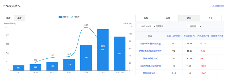 另有3个接近10亿,分别是艾司洛尔9.7、地塞米松9.46、来那度胺9.95。