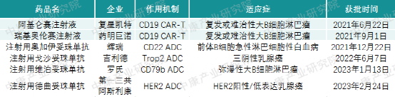 表2:2023年通过初步形式审查的ADC与CAR-T药物