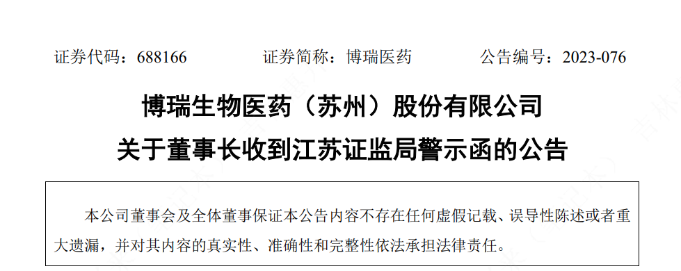 10月19日,博瑞医药发布公告,因在大咖解读GLP-1全产业链系列交流会发布具有误导性言论,博瑞医药董事长、总经理袁建栋收到中国证券监督管理委员会江苏监管局下达的《关于对袁建栋采取出具警示函措施的决定》。