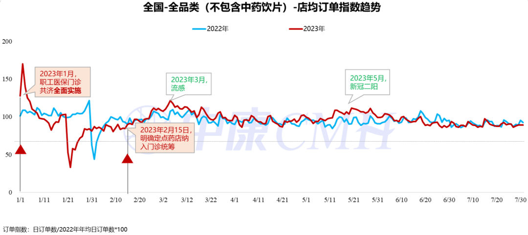 今年6月份以来,药店客流呈显著下滑趋势,客流量下降为去年同期水平。