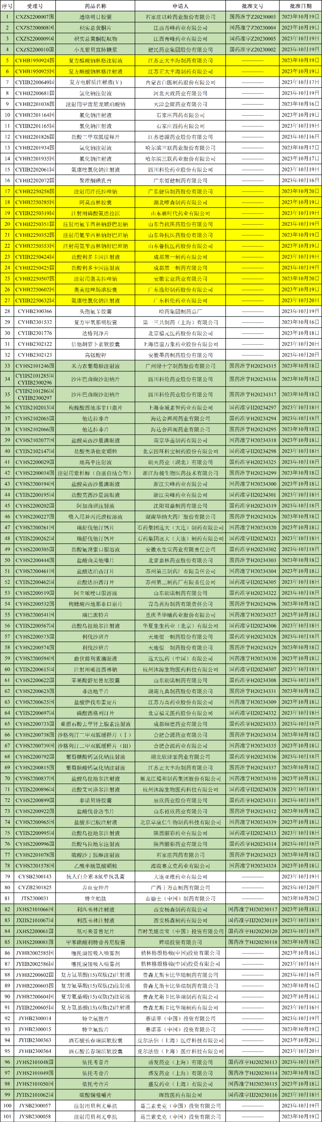 刚刚,国家药监局发布2023年10月24日药品批准证明文件送达信息,本批次共有101个受理号获批,其中12个为一致性评价受理号,过评品种包括: