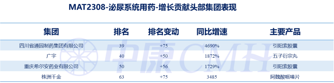 MAT2308泌尿系统用药中以引阳索胶囊为主的补肾壮阳中成药增长较为突出;解决肾病问题的阿魏酸哌嗪片在本期也有不错表现。
