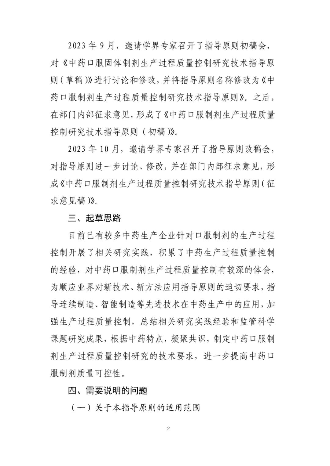 附件2:《中药口服制剂生产过程质量控制研究技术指导原则(征求意见稿)》起草说明