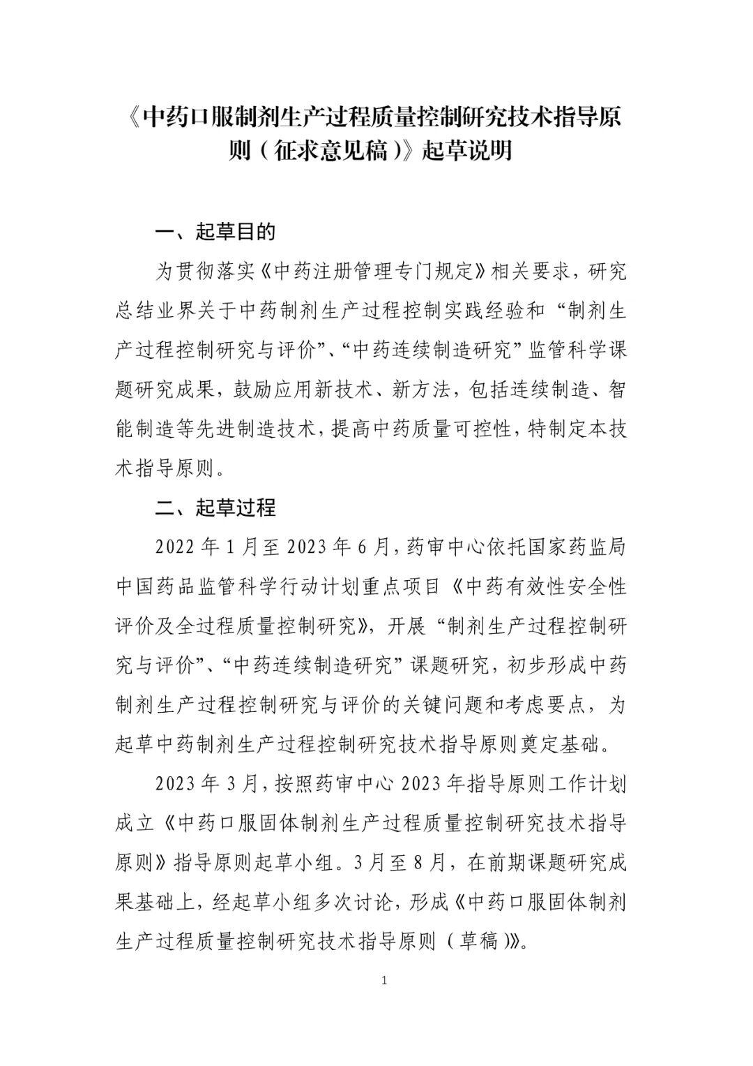 附件1:《中药口服制剂生产过程质量控制研究技术指导原则(征求意见稿)》