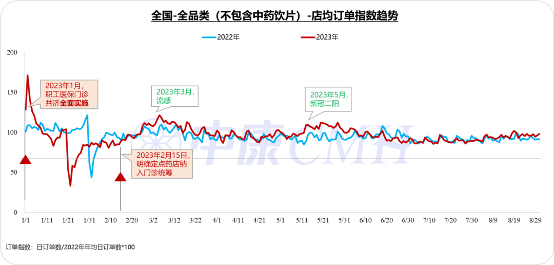 而全国零售药店客流自6月以来,也是呈下滑趋势,直到8月份才迎来客流量小幅度回升。那么零售药店药品销售年度拐点的出现,以及客流的下滑,是基层医疗机构抢走了零售药店客流吗?