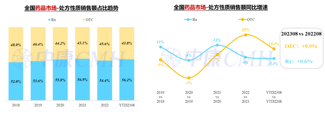 8月,处方药和OTC药品增长乏力,销售额同比增速分别为0.6%、0.9%。