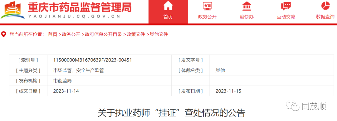 11月14日,关于执业药师“挂证”查处情况的公告