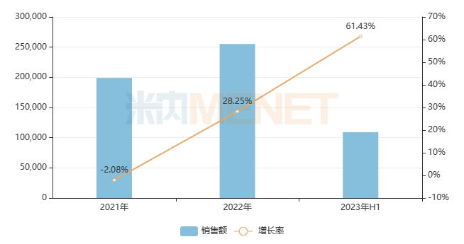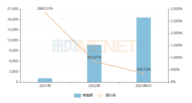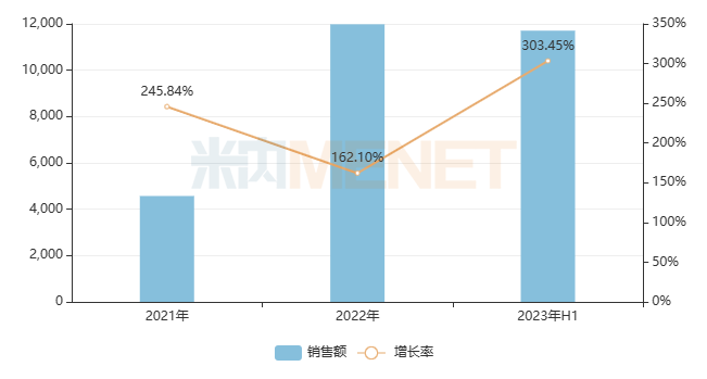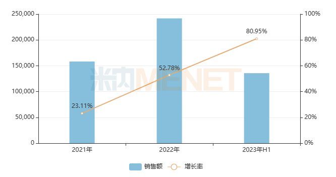 表2:2023上半年销售额增长率超过50%的过亿品牌(按产品名+生产企业统计)