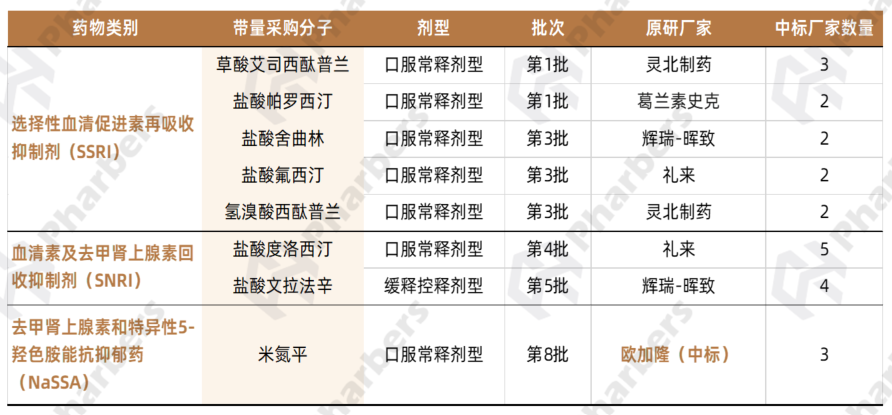 8款抗抑郁药纳入国家集采,仅1家原研中标