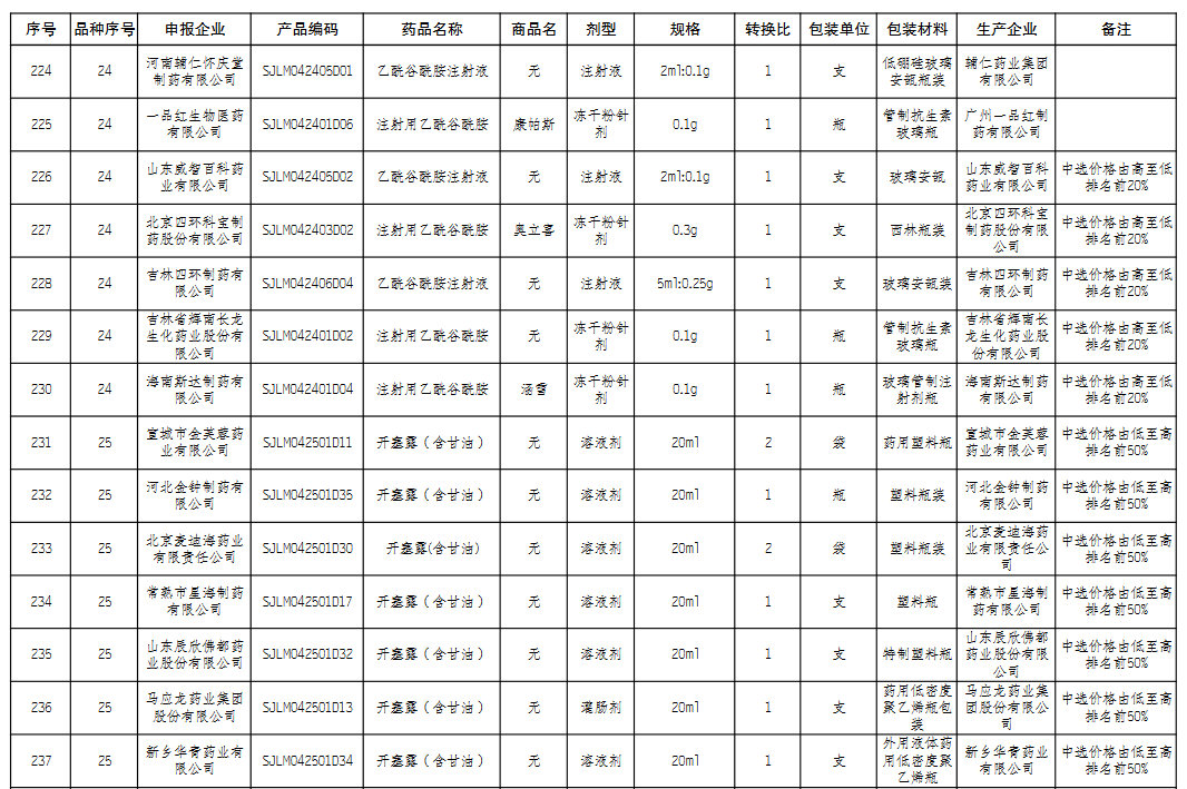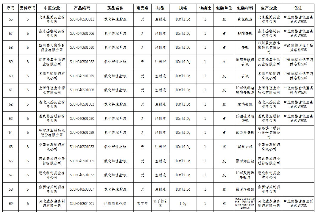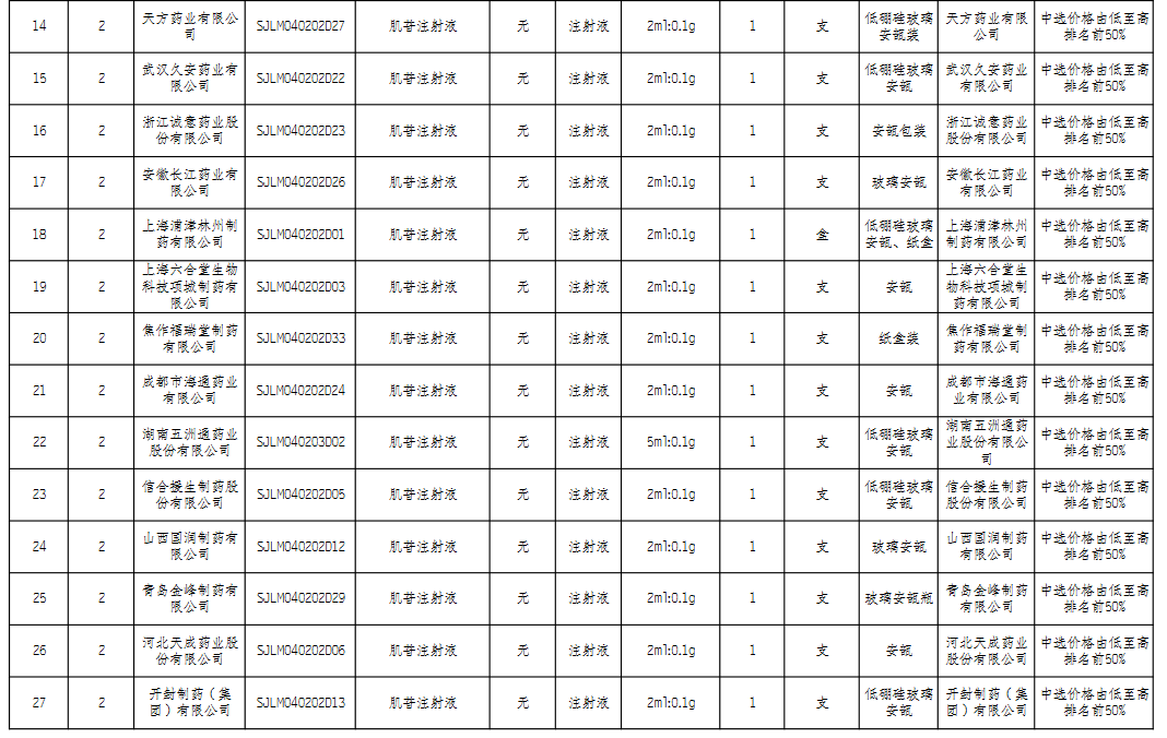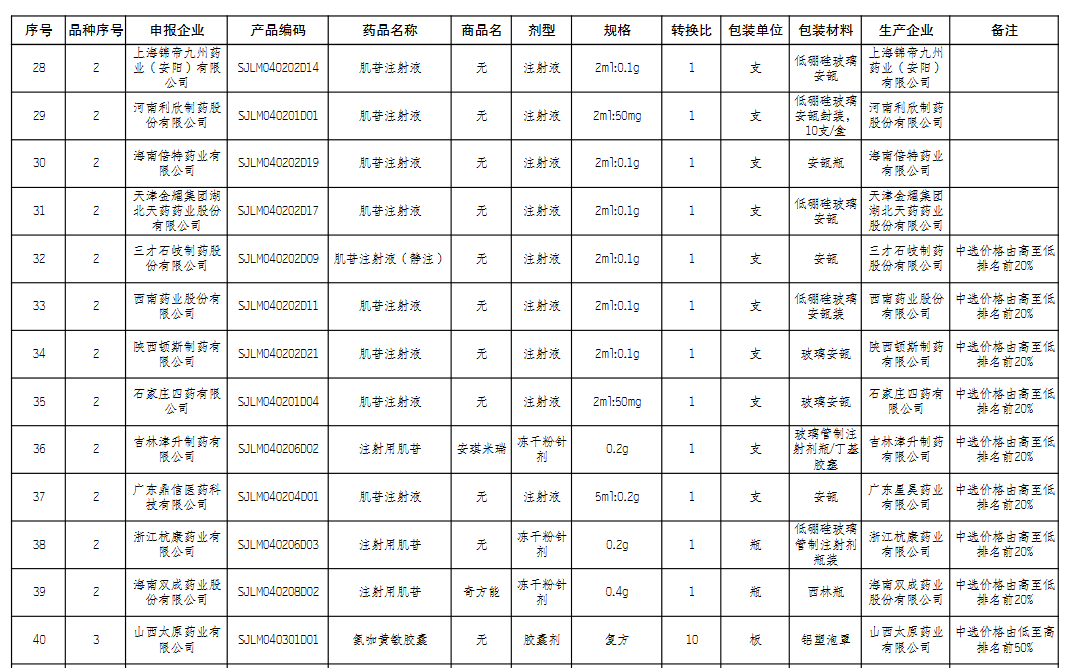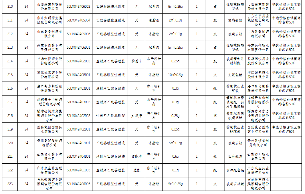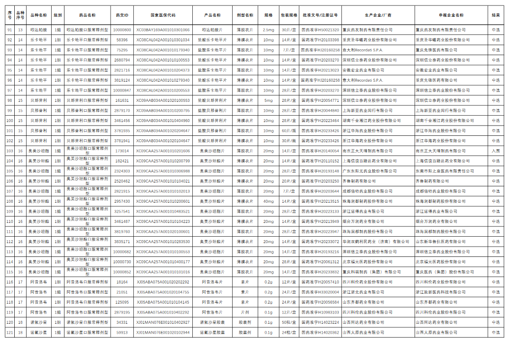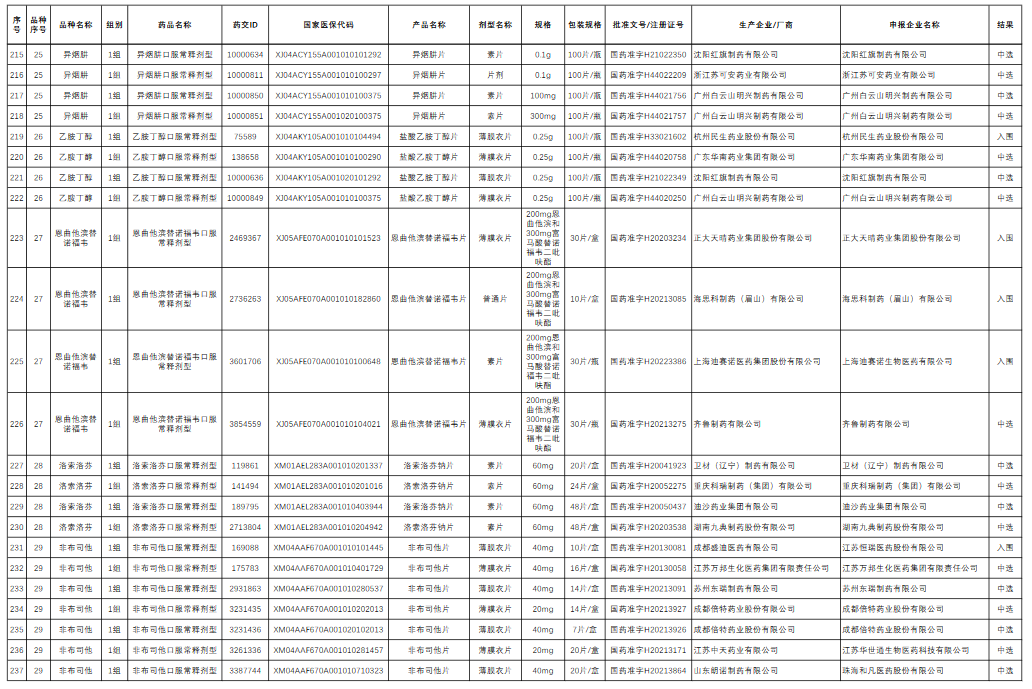十九省(区、兵团)药品联盟集中带量采购中选产品清单
