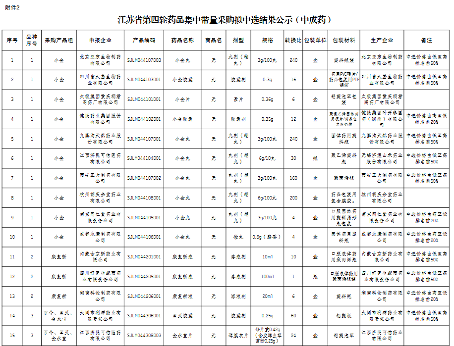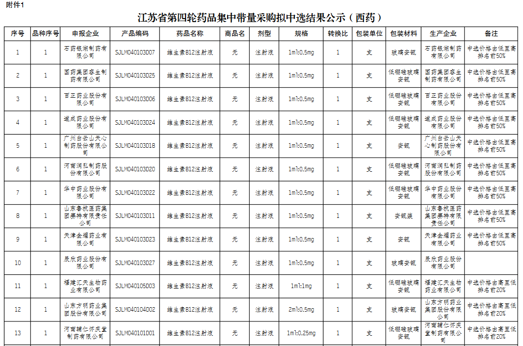 11月20日,河南省医保局发布《十九省(区、兵团)药品联盟采购公告(八)》,25个药品中选产品清单公布。由河南、山西、内蒙古、辽宁、吉林、黑龙江、安徽、江西、湖南、广西、海南、贵州、云南、西藏、陕西、青海、宁夏、新疆、新疆生产建设兵团等十九省(区、兵团)组成省际联盟,代表上述地区医药机构开展药品集中带量采购工作。2021年,河南牵头山西、内蒙古、江西、广东、广西、重庆、贵州、云南、陕西、青海、宁夏、新疆、新疆建设兵团等十四省联盟集采。本次十九省药品联盟集采规则大致与河南十四省联盟集采一致,均是以“综合评审+议价谈判”方式产生拟中选企业,在此基础上引入了复活拟中选机制,进一步调动药企参与的积极性。江苏第四轮药品带量采购拟中选结果公布