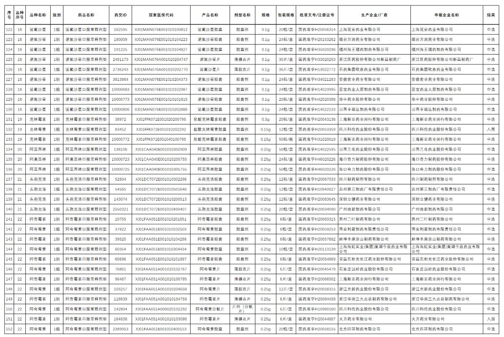 广东省替硝唑等药品集中带量采购中选/入围结果