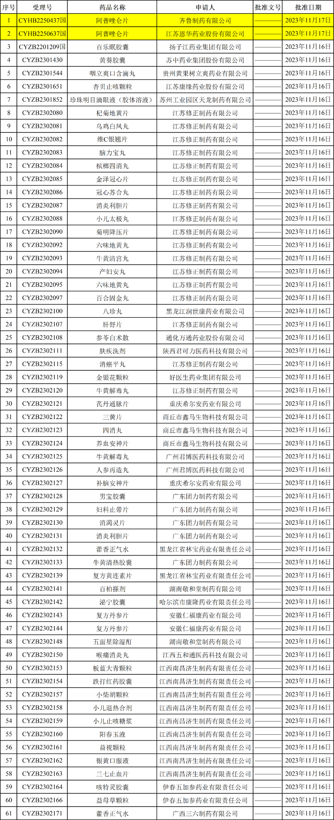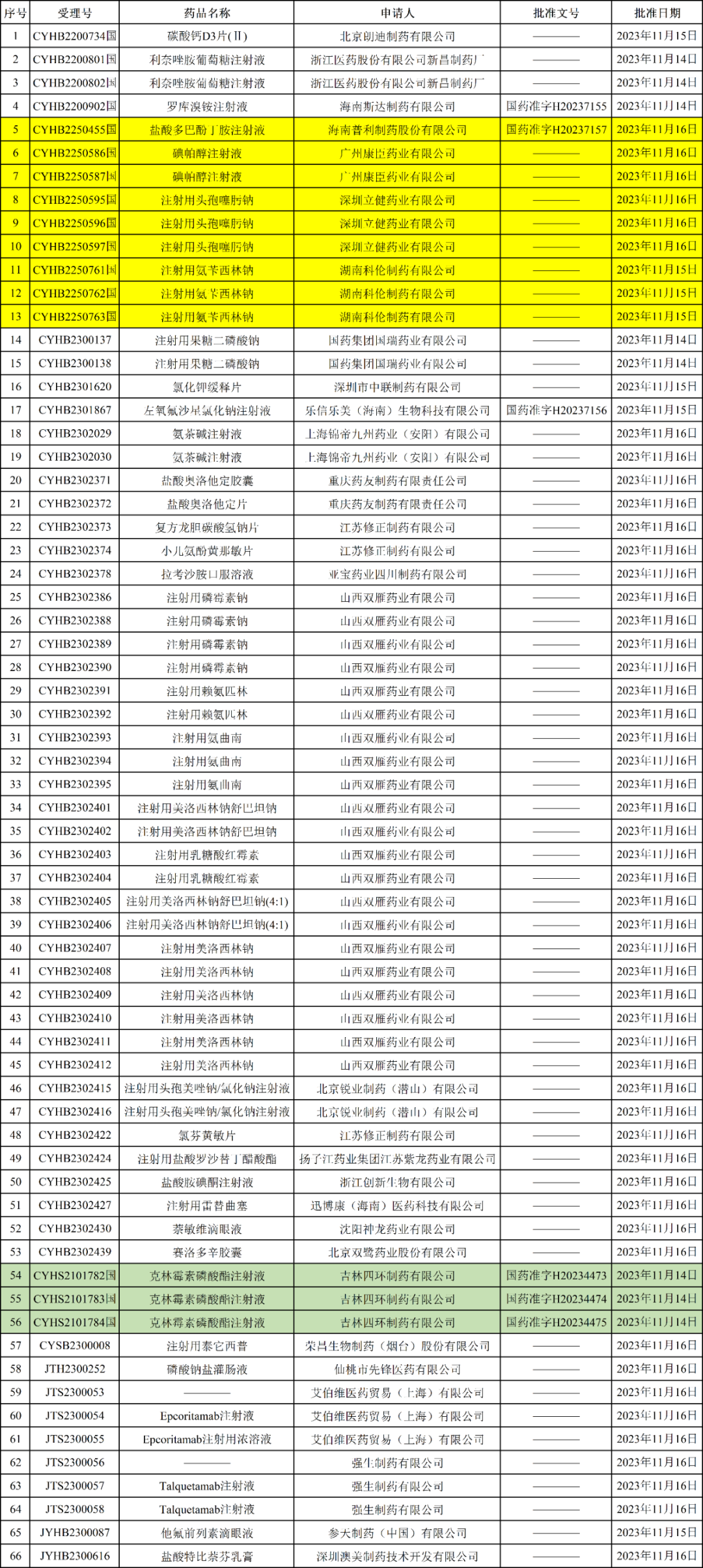 此外,本次吉林四环制药的克林霉素磷酸酯注射液获批上市,视同通过一致性评价。