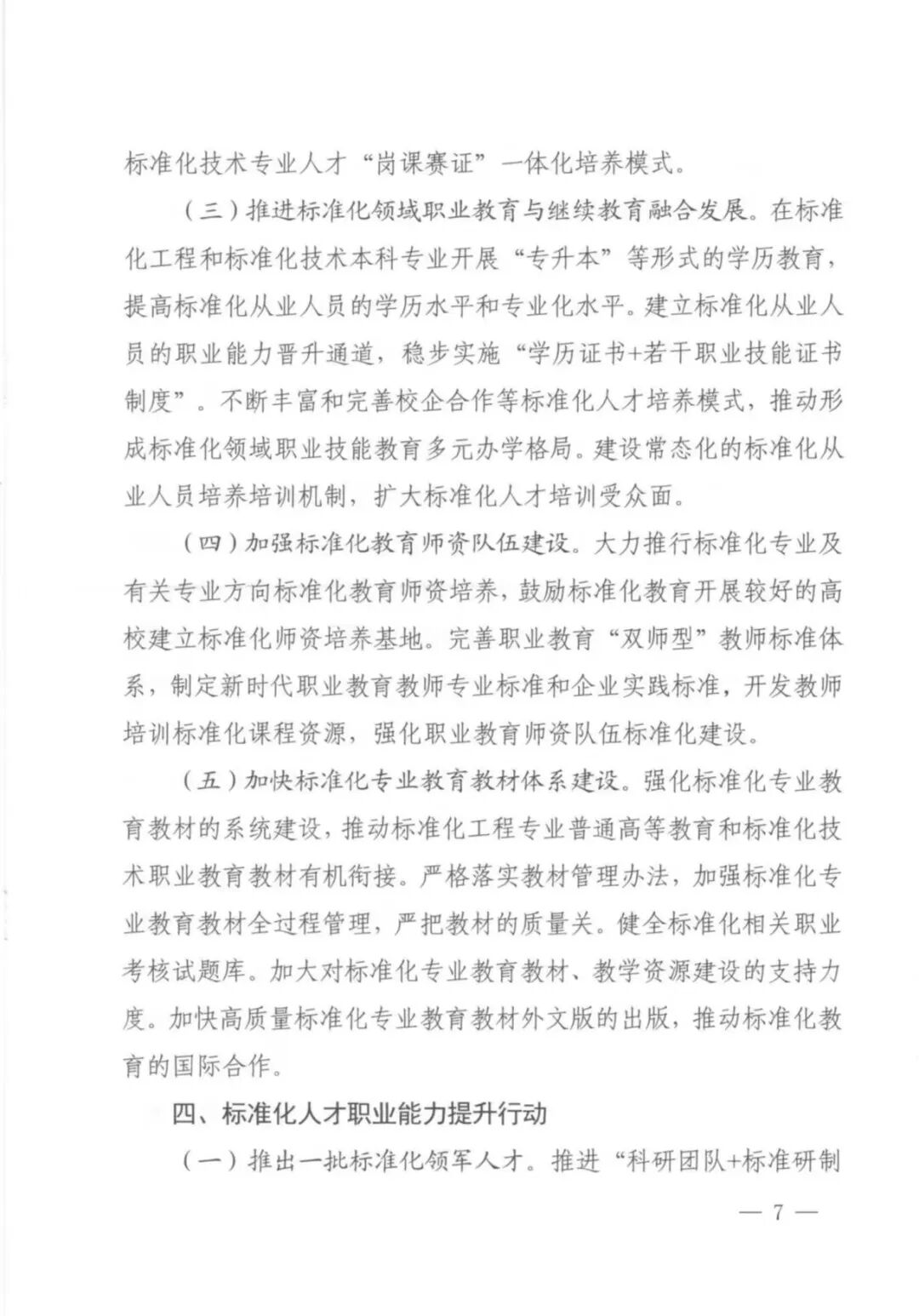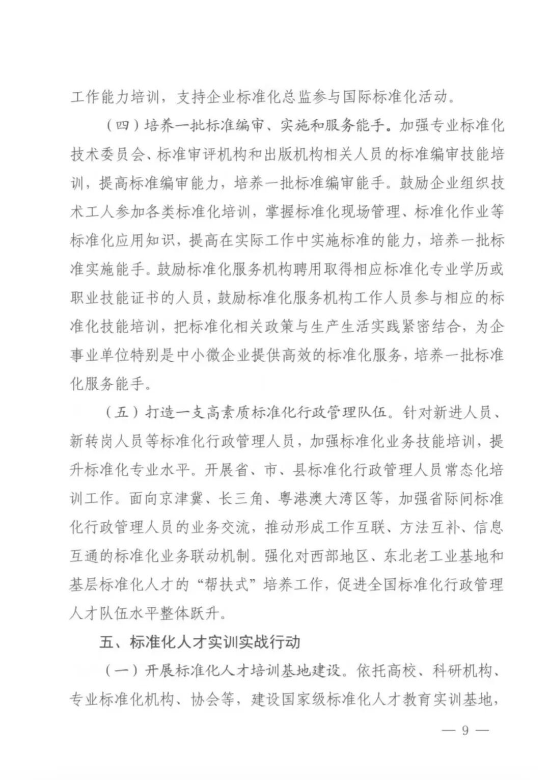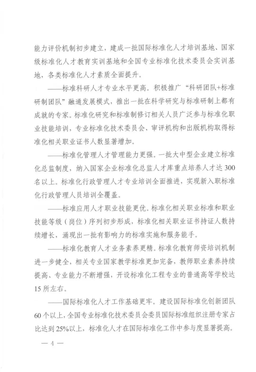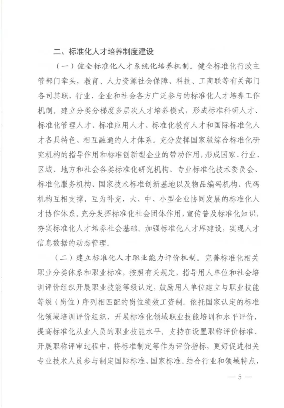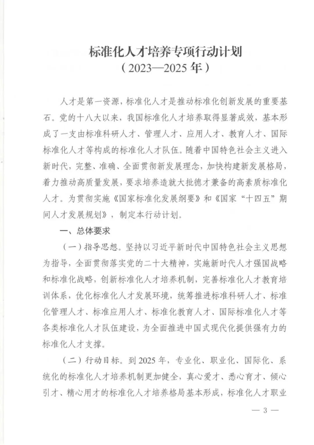 近日,国家标准委、教育部、科技部、人力资源社会保障部、全国工商联五部门印发《标准化人才培养专项行动计划(2023-2025 年)》的通知,到2025年,专业化、职业化、国际化、系统化的标准化人才培养机制更加健全,真心爱才、悉心育才、倾心引才、精心用才的标准化人才培养格局基本形成,标准化人才职业能力评价机制初步建立,建成一批国际标准化人才培训基地、国家级标准化人才教育实训基地和全国专业标准化技术委员会实训基地,各类标准化人才素质全面提升。通知具体如下。
