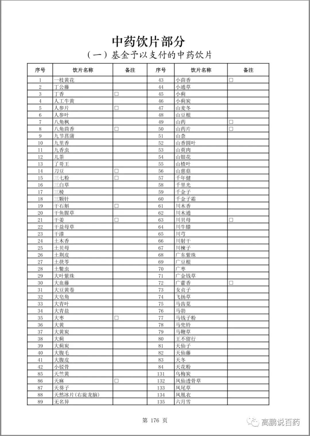 附:不得纳入基金支付范围的中药饮片名录(包括药材及炮制后的中药饮片)