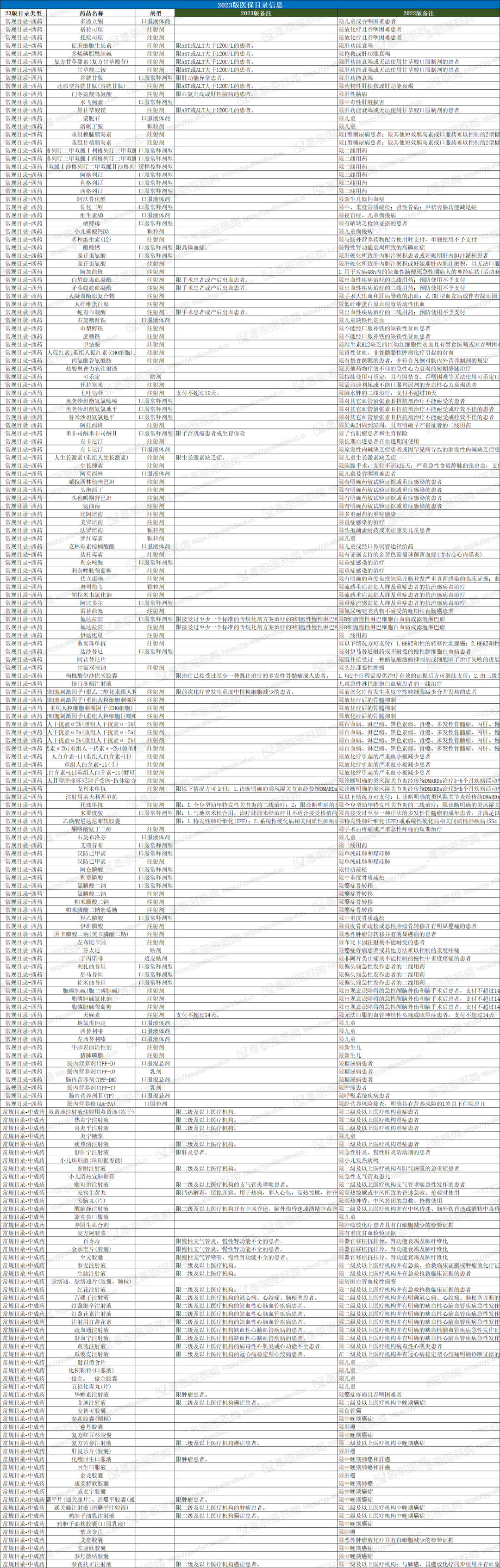 与2022年版医保目录对比,本次调整共有275个药品的目录备注发生变化,其中包含197个西药,78个中成药。总体而言,超过半数的变化为删除医保支付限定范围。详情如下表: