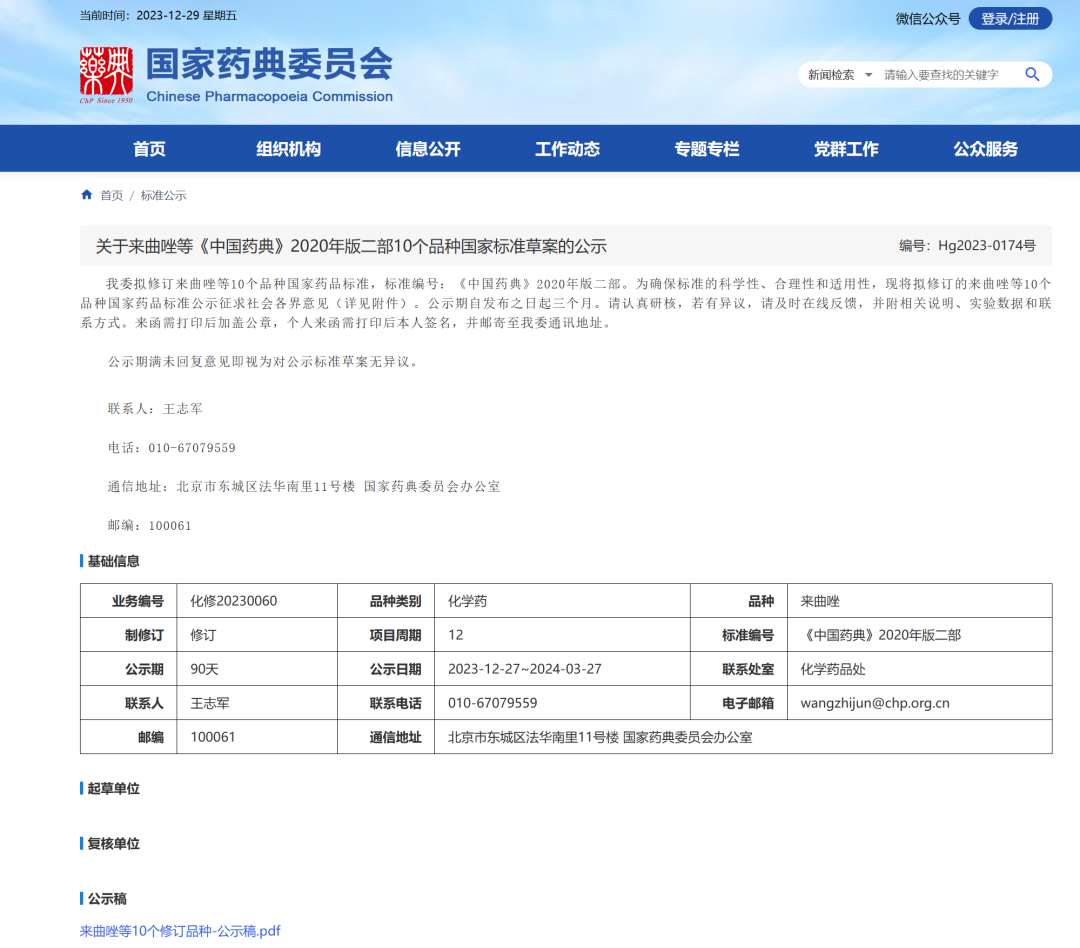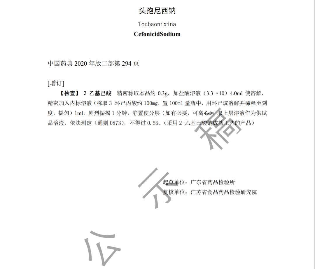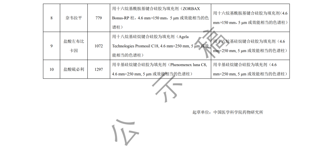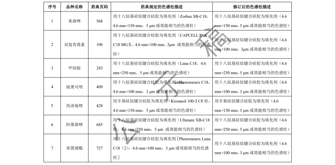 近日,国家药典委公示了12个化药品种标准草案;品种:利福昔明(修订鉴别项);头孢尼西钠(修订检查项 2-乙基己酸);来曲唑、双氢青蒿素、甲钴胺、地奥司明、西洛他唑、阿那曲唑、青蒿琥酯、奈韦拉平、盐酸左布比卡因、盐酸硫必利10个品种(修订色谱柱描述)。