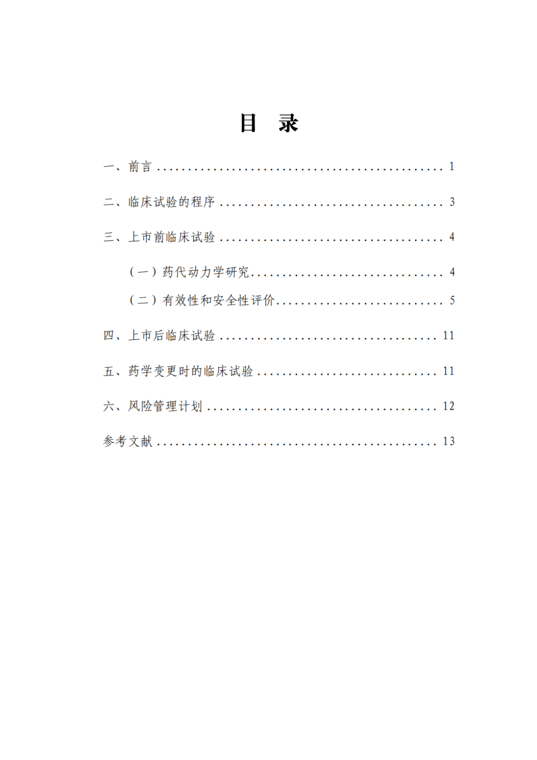 《指导原则(修订版)》包含前言、临床试验的程序、上市前临床试验、上市后临床试验、药学变更时的临床试验、风险管理计划。