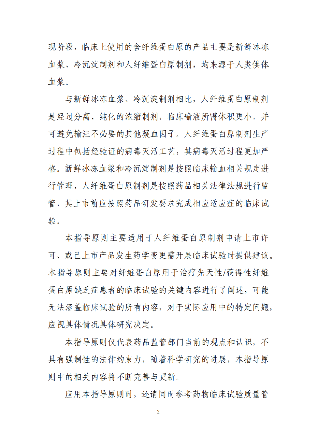本指导原则主要适用于人纤维蛋白原制剂申请上市许可、或已上市产品发生药学变更需开展临床试验时提供建议。