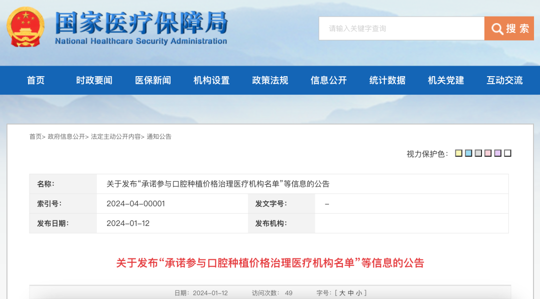 2、“承诺参与口腔种植价格治理医疗机构名单”等信息将公布