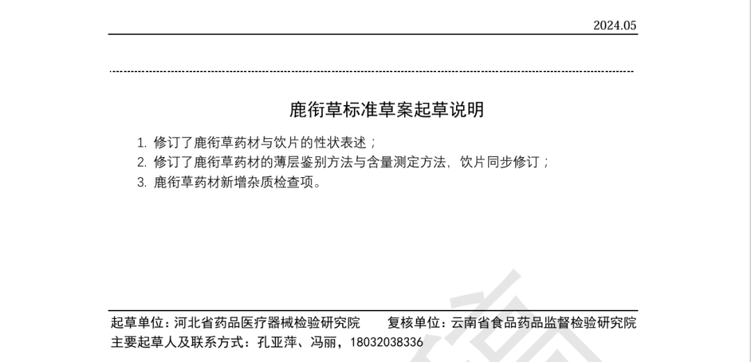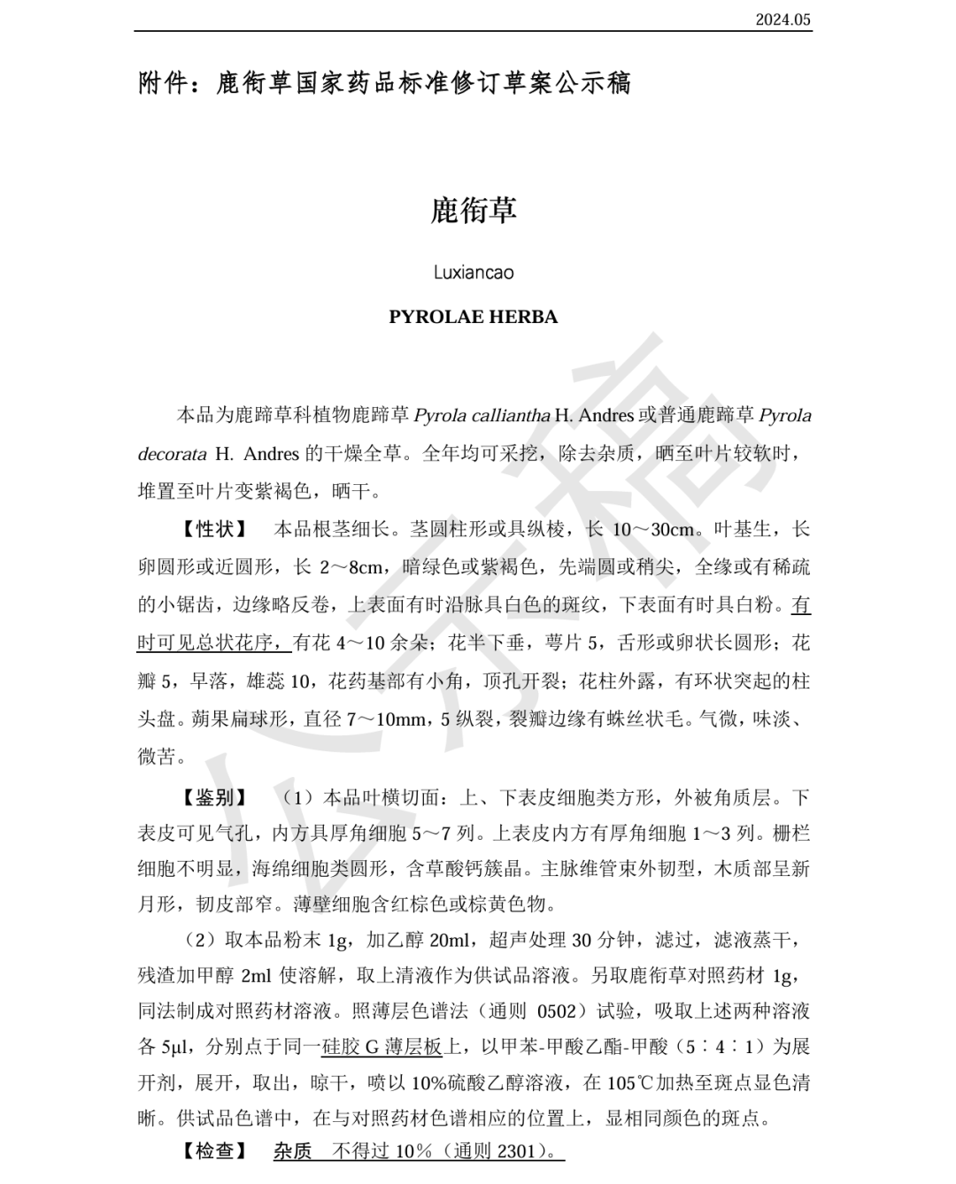 2.修订了鹿衔草药材的薄层鉴别方法与含量测定方法,饮片同步修订;