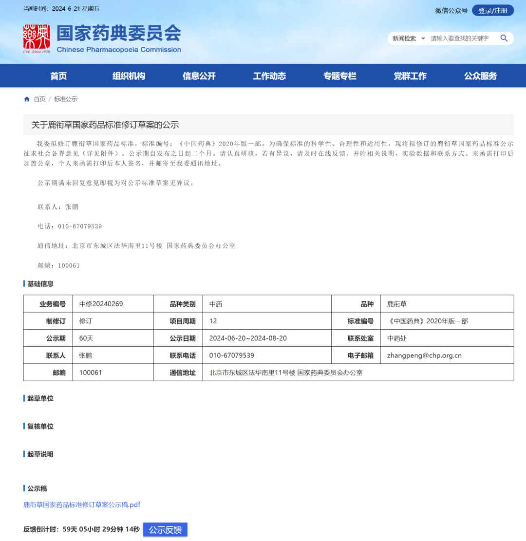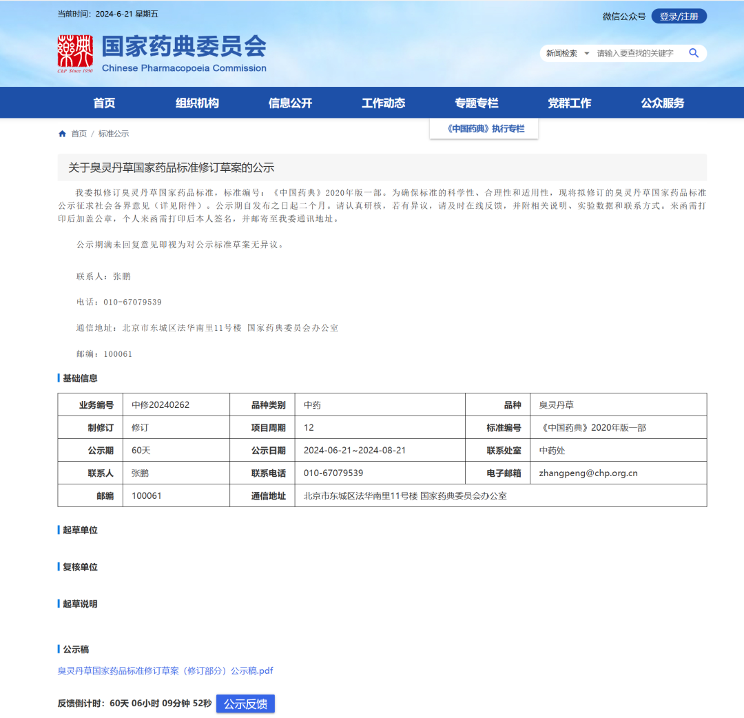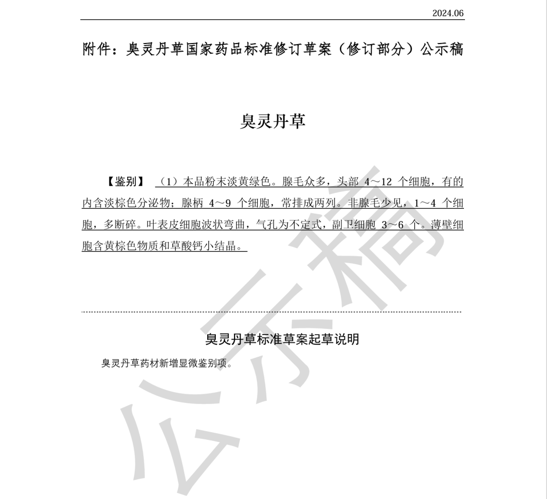 6月20-21日,国家药典委公示了15个中药标准草案:臭灵丹草、菥蓂、锁阳、杠板归、罗布麻叶、清脑降压片、脉络宁颗粒、培元通脑胶囊、滑膜炎颗粒、广藿香、鹿衔草、杜仲、益母草、灯心草、赭石。