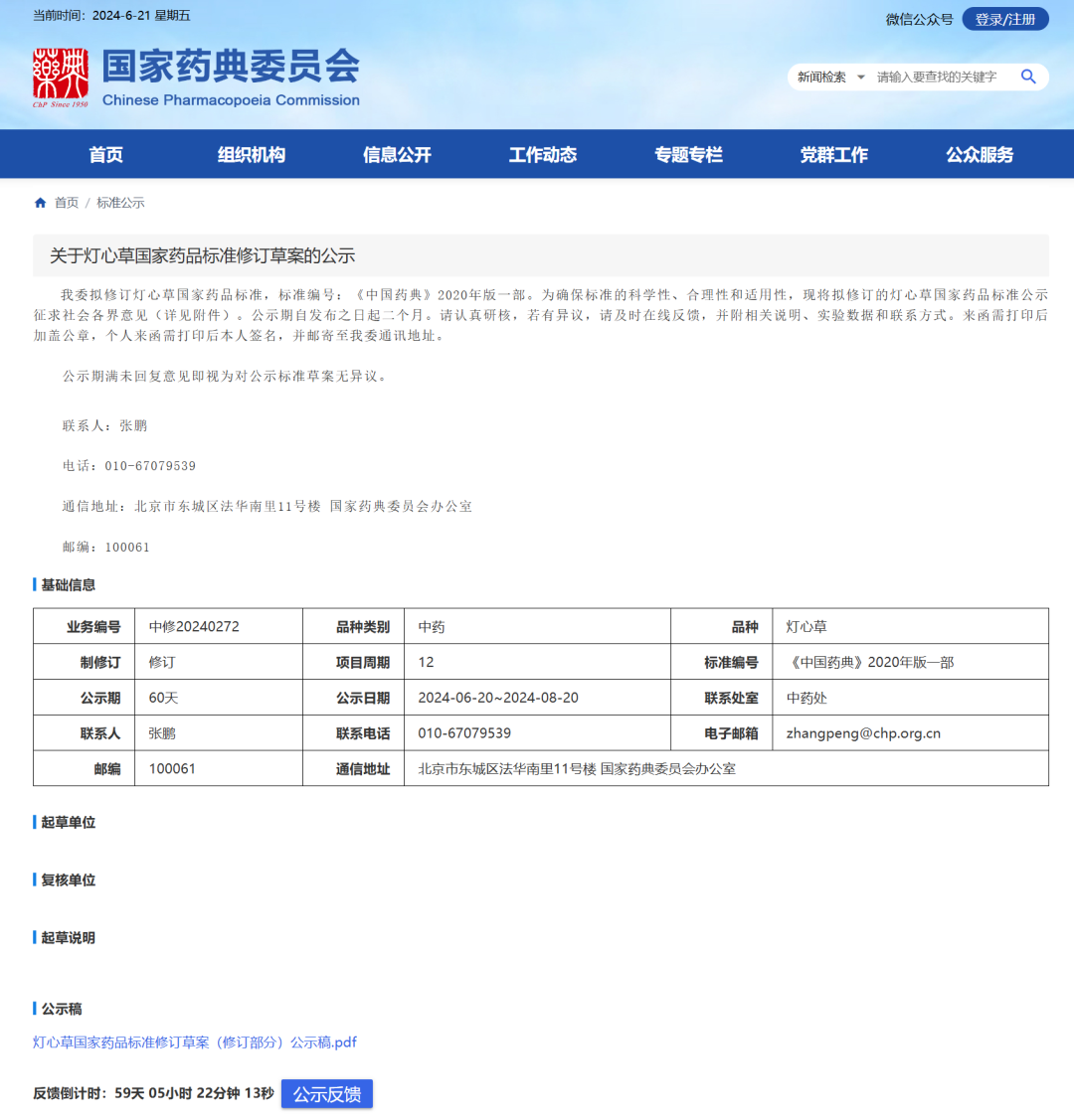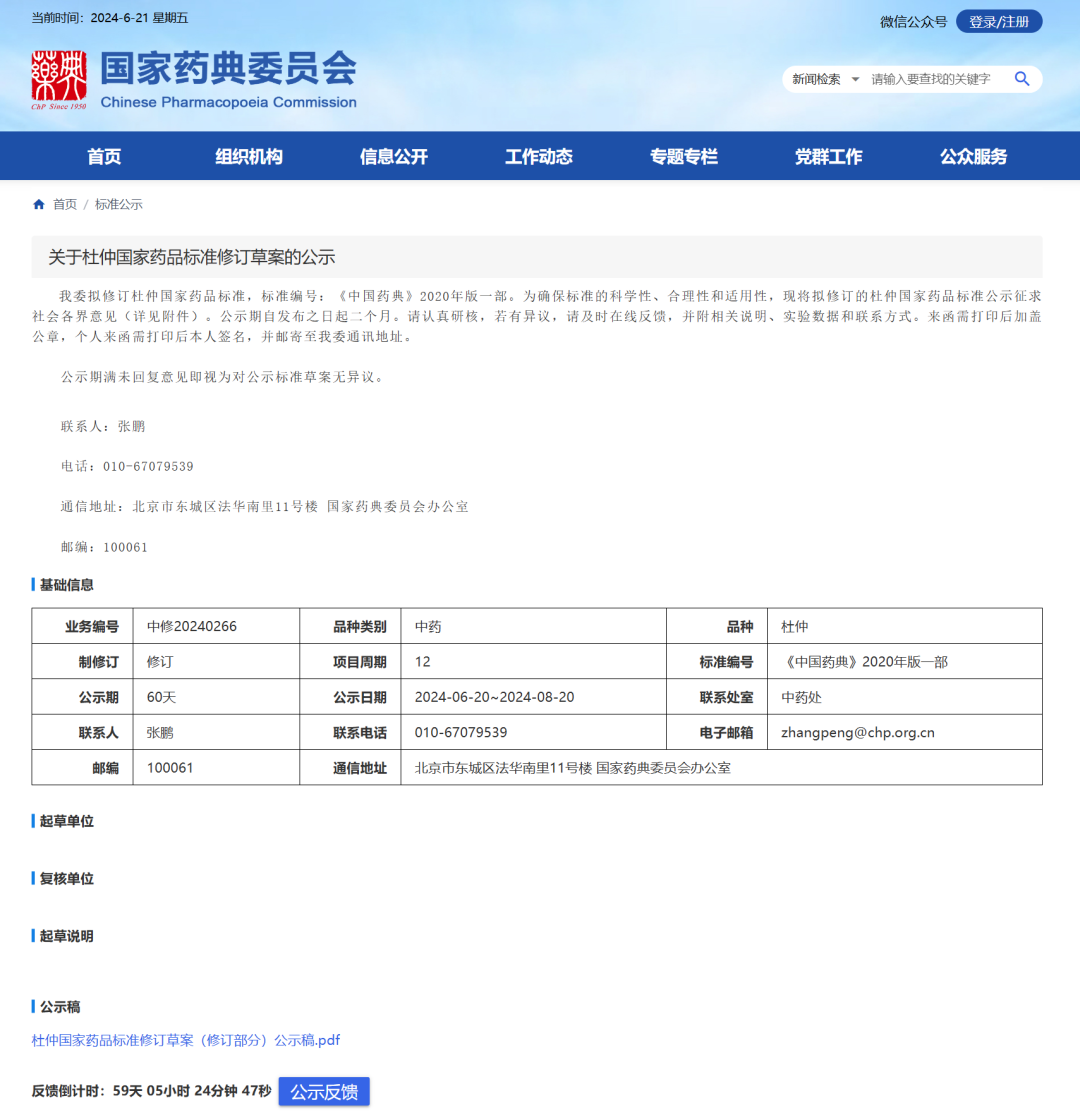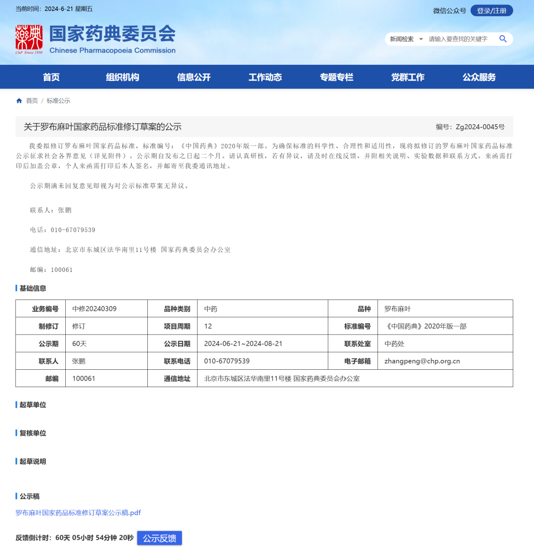6月20-21日,国家药典委公示了15个中药标准草案:臭灵丹草、菥蓂、锁阳、杠板归、罗布麻叶、清脑降压片、脉络宁颗粒、培元通脑胶囊、滑膜炎颗粒、广藿香、鹿衔草、杜仲、益母草、灯心草、赭石。