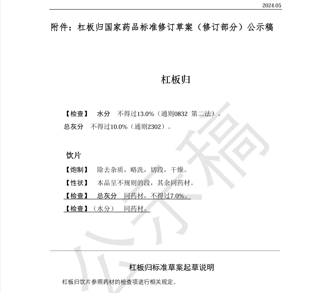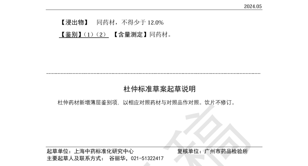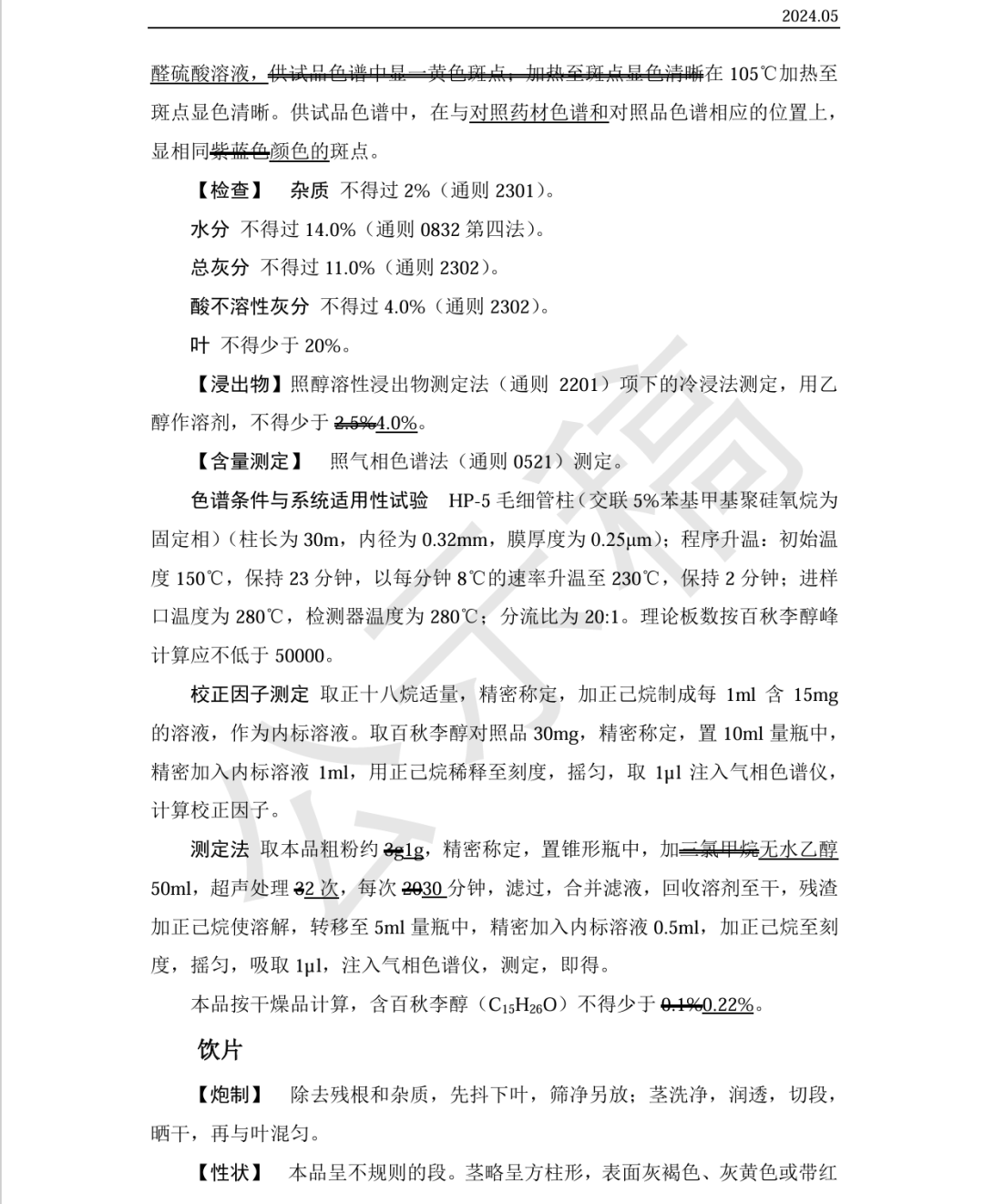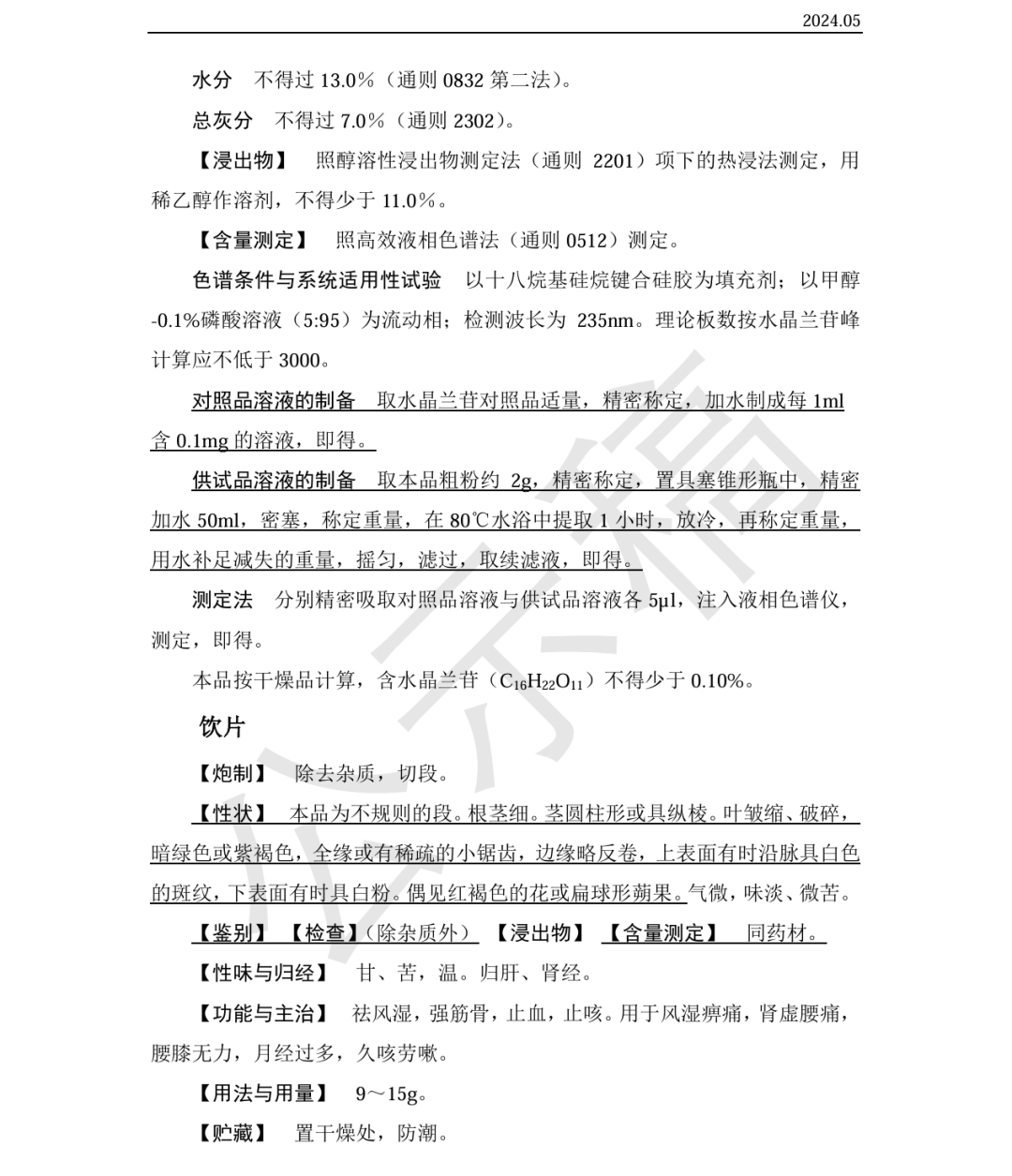 2.饮片同步修订,增订了检查、浸出物、含量测定项目。
