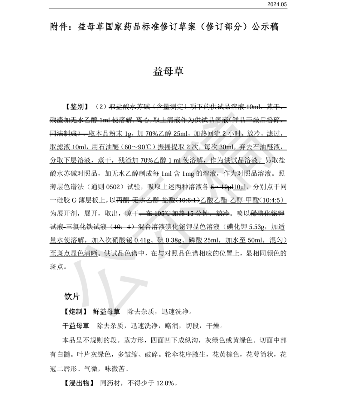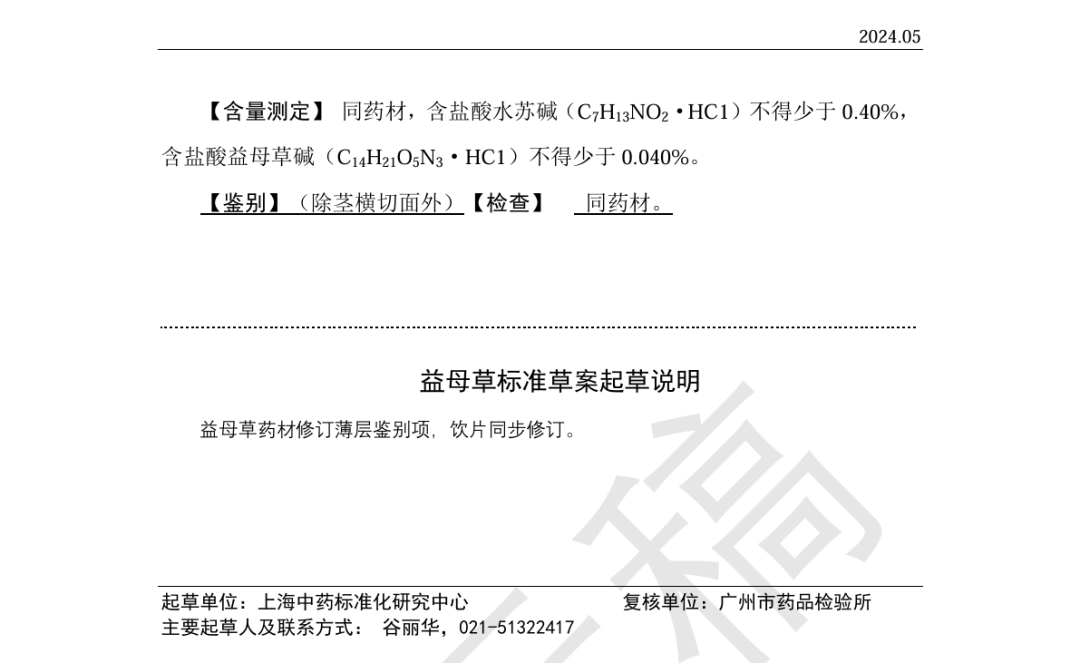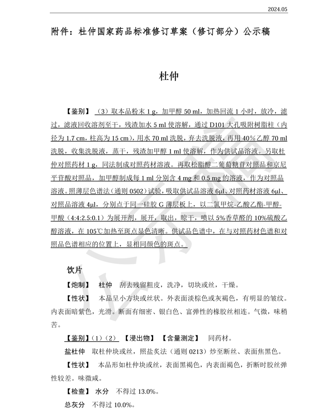 2.饮片同步修订,增订了检查、浸出物、含量测定项目。