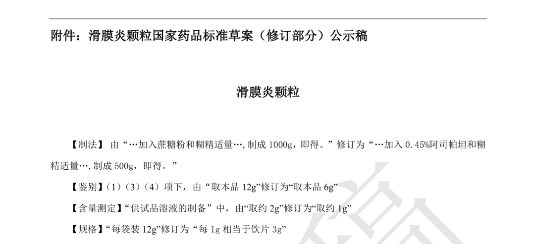 3.【含量测定】拟修订含量限度表述方式,由以袋计修订为以g计,并根据不同规格修订取样量及含量限度。