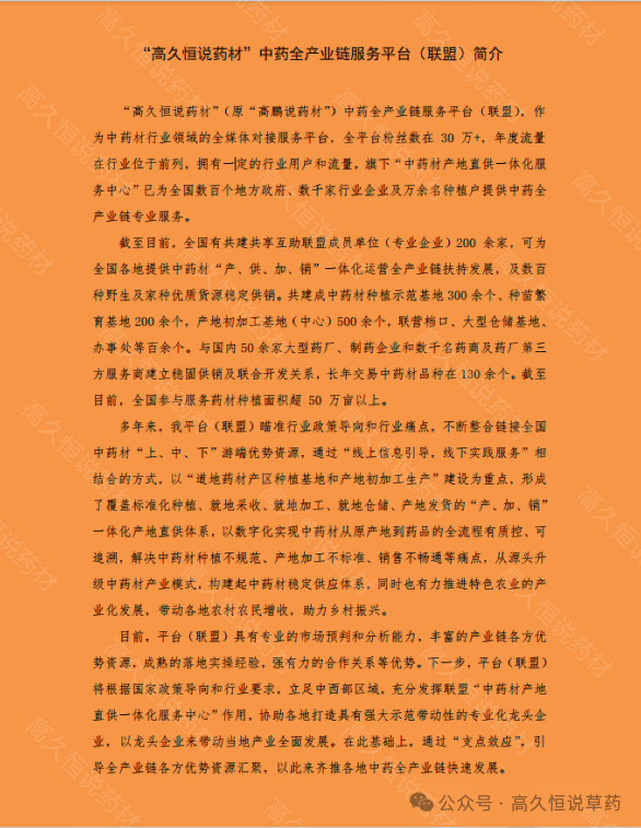 1.“高鹏说药材”致力于提供中药行业各类资讯信息,但不保证信息的合理性、准确性和完整性,且不对因信息的不合理、不准确或遗漏导致的任何损失或损害承担责任。