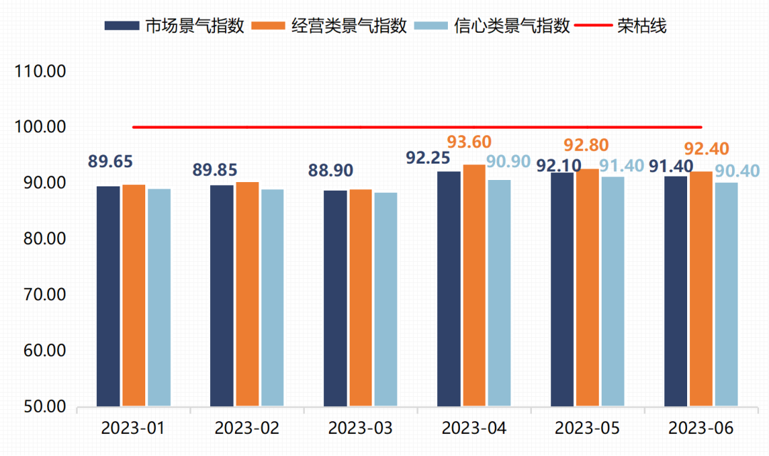 上半年,安国中药材市场经营类景气指数和信心类景气指数均呈现弱势运行态势,二季度表现略优于一季度,但总体上升动力不足。6月经营类景气指数和信心类景气指数分别为92.40点和90.40点,环比分别下降0.40点和1.00点。