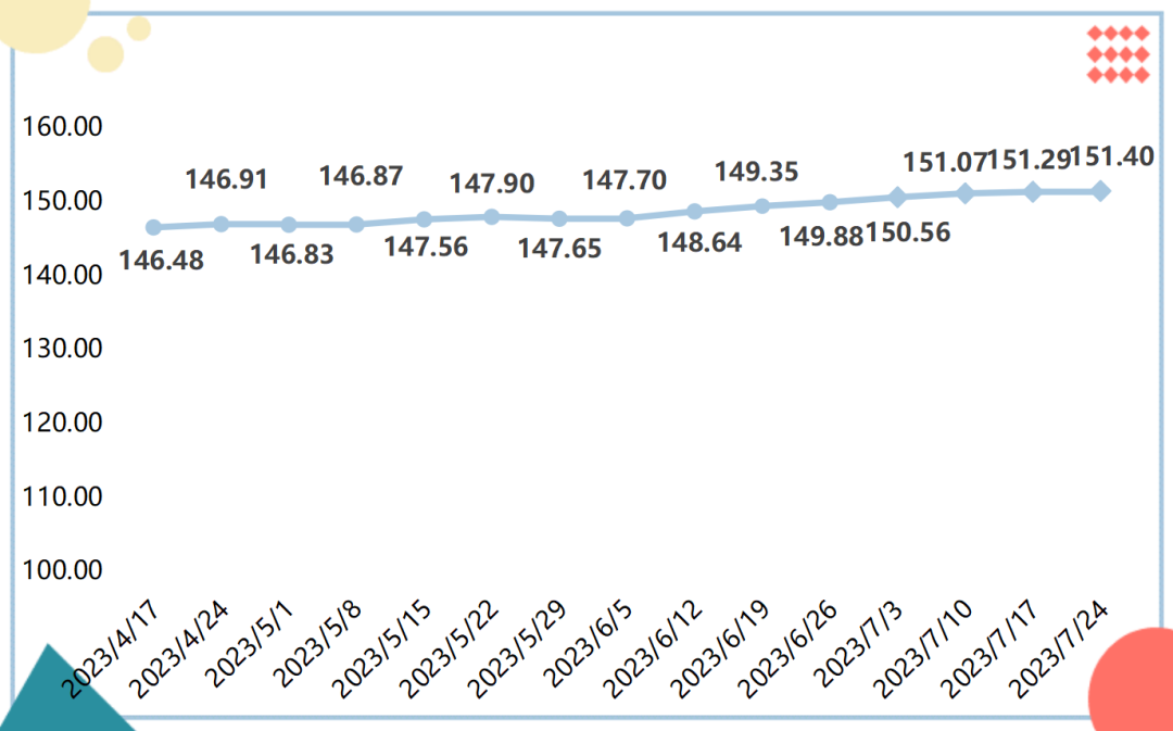 7月中药材市场有所降温,多数商家转为观望态度,跌价品种数较前两月增多,但中药材价格指数依旧强势上行,周价格指数环比涨幅逐渐收窄。据“中国·安国中药材指数”信息系统监测,7月末(07.24-07.30),安国中药材价格指数收于151.40点,较6月末(06.26-07.02)149.88点上涨1.01%。