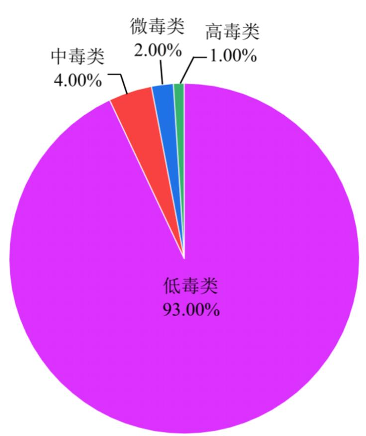 苦皮藤素 | 植物源类农药 | 1.79 | 敌磺钠 | 氨基磺酸类 | 7.14 |
